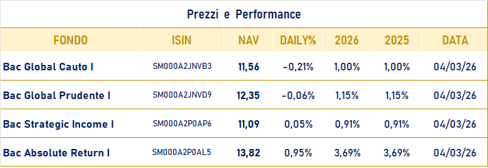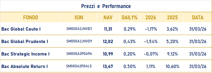 Area Clienti Istituzionali Vengono riportate di seguito le performance delle linee di investimento Bac Investments SG