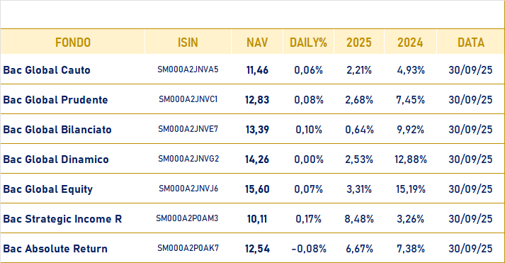 Area Clienti Privati Vengono riportate di seguito le performance delle linee di investimento BAC Investments SG S.p.A. Proposte Investimento